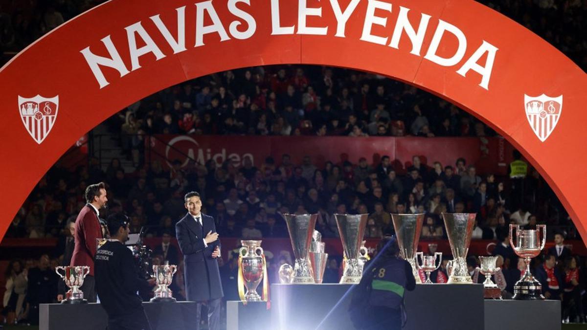 El Sevilla homenajea a un emocionado Navas ante 45.000 espectadores en el Sánchez-Pizjuán