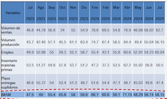 [ad_1] Santo Domingo.- El Índice Mensual de Actividad Manufacturera (IMAM) de la Asociación de Industrias de la República Dominicana (AIRD) continuó ascendiendo al pasar de 56.74 en junio a 58.15 en julio del presente año. Los resultados mayores a 50 corresponden a una mayor actividad con relación al mes anterior. El IMAM está compuesto por cinco variables: ventas, producción, empleos, inventarios y tiempos de entrega. Para el mes de julio, tres de las cinco variables se mostraron al alza: “Volumen de ventas” ascendió de 58.02 en junio a 62.7 en…