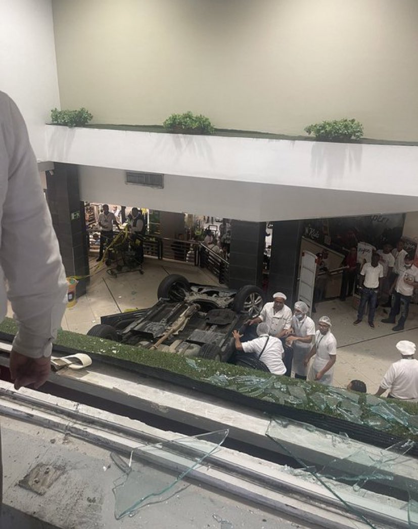 Santo Domingo – Un vehículo cayó dentro del Supermercado Nacional ubicado en la avenida 27 de Febrero, pasadas las 12 del mediodía de este miércoles.