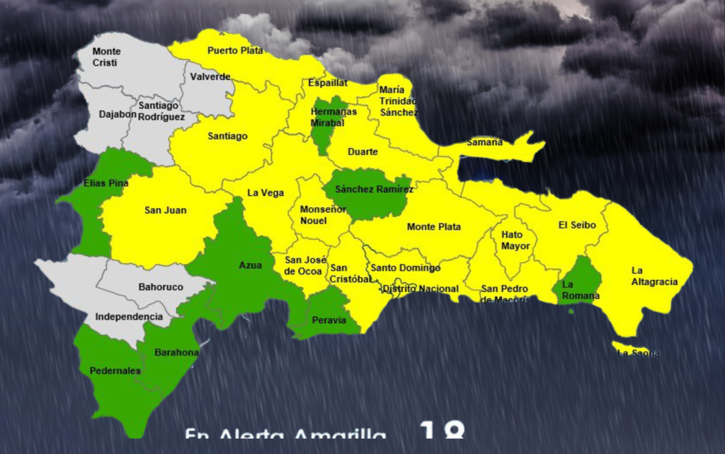 Santo Domingo. – El Centro de Operaciones de Emergencias (COE) mantiene 18 provincias en alerta amarilla y mantiene 8 en verde debido a la incidencia de una vaguada y una onda tropical.
