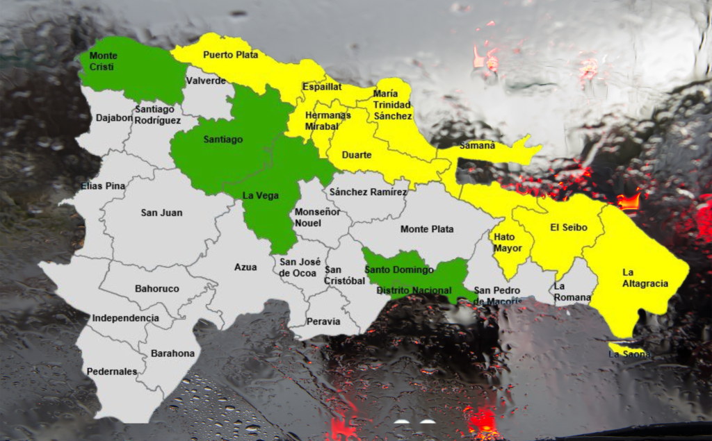Las provincias en alerta amarilla son: Puerto Plata, María Trinidad Sánchez, Espaillat, Hato Mayor, El Seibo, Samaná, Duarte, Hermanas Mirabal y La Altagracia.