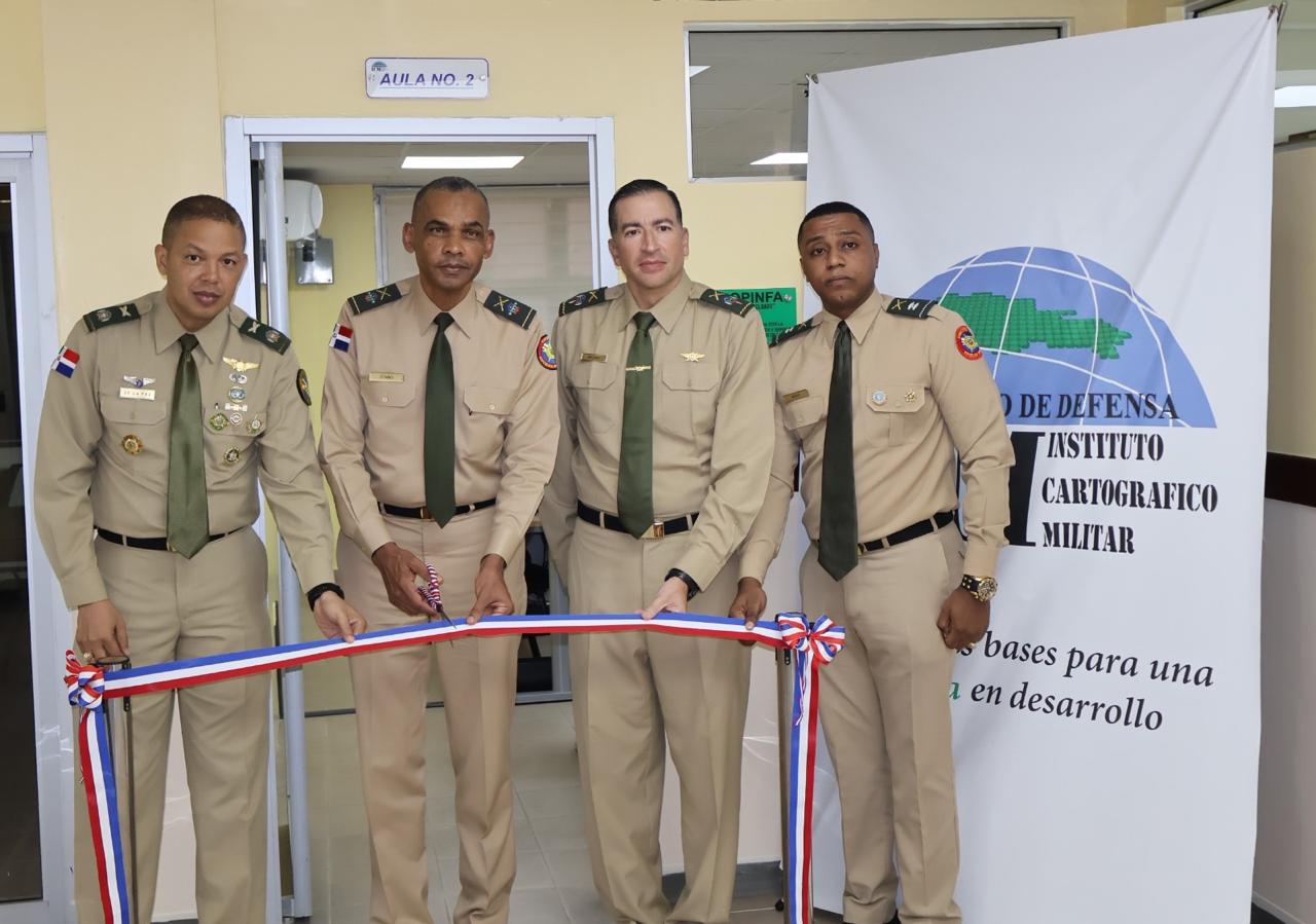 Resaltó que el aula está ubicada en las instalaciones del Instituto Cartográfico Militar y fue equipada con una pantalla interactiva de 75 pulgadas, dos impresoras, diez computadoras i5 con monitor de 24 pulgadas, diez sillas de escritorio y cinco escritorios.