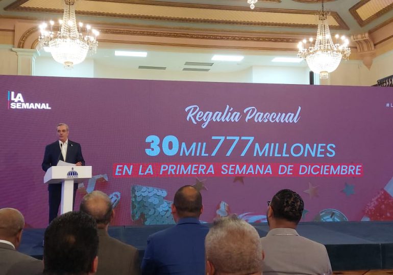 Santo Domingo. – El presidente Luis Abinader, anunció este lunes que el Gobierno dominicano pagará un total de 30 mil 777 millones de pesos por concepto de regalía pascual en la primera semana de diciembre.