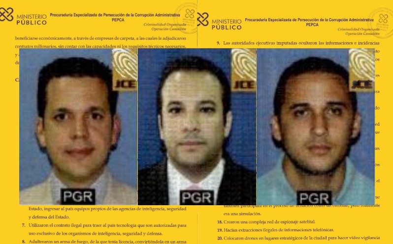 Las autoridades revelaron que los imputados en la Operación Camaleón son el exdirector del Instituto Nacional de Tránsito y Transporte Terrestre (INTRANT), Hugo Beras; Frank Díaz Warden, coordinador de Despacho y representante de Beras ante el Comité de Compras del INTRANT; Samuel Gregorio Baquero Sepúlveda, exdirector de tecnología del INTRANT; José Ángel Gómez Canaán (Jochi), propietario de la empresa Aurix S.A.S.; Pedro Vinicio Padovani Báez, exencargado del Centro de Control de Tráfico del INTRANT; Juan Francisco Álvarez Carbuccia, director administrativo y financiero del INTRANT y Carlos José Peguero Vargas.