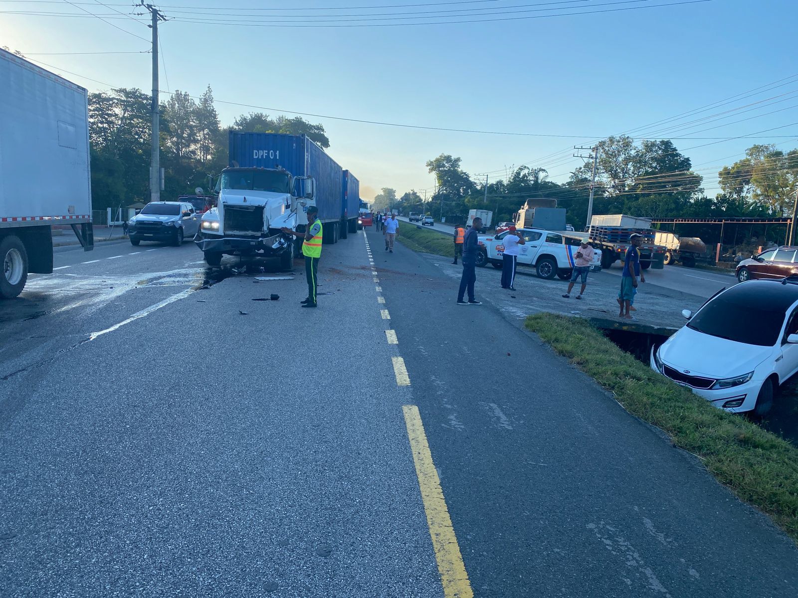 Monseñor Nouel. – El Sistema Nacional de Atención a Emergencias y Seguridad 911 coordinó la respuesta a un accidente de tránsito ocurrido en la autopista Duarte, a la altura del sector El Setenta y Siete, municipio de Piedra Blanca. El incidente involucró a cinco vehículos, entre ellos un autobús y una patana, resultando en aproximadamente 16 personas afectadas.