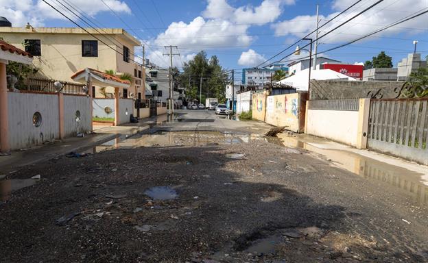 Moradores del Ensanche Quisqueya, Distrito Nacional, demandaron la reparación del tramo de la calle Pedro Albizu Campos con Doctor Fernando Alberto Defilló que está en condiciones deplorables por la cantidad de hoyos y agua estancada.
