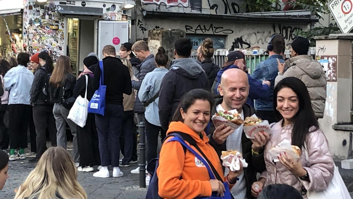 Ante el Mustafa’s Gemüse Kebab de Mehringdamm, en el multiétnico Kreuzberg, se forman largas colas a cualquier hora del día y de la noche, hasta entrada la madrugada. En bermudas o en gorros de lana, según la estación del año. Las colas ante el ‘Mustafá’ están esencialmente formadas por turistas, más que por berlineses. En este templo del ‘döner’ de aspecto precario, pero a la vez gentrificado, no se ofrece sin más la carne asada y cortada a finas lonchas. Se la acompaña de verdura cortadita, la ‘gemüse’ que da nombre al puesto, la salsa ‘secreto de la casa’ y se la ofrece dentro de su pan de ‘pita’. Su creador no se llamada Mustafá, sino Tarik.