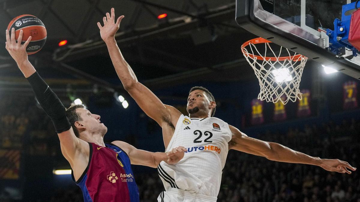 En el lado contrario estaba Mario Hezonja, que los ha vivido con ambos colores, definitivamente enemigo tras el jugueteo del pasado verano con su amago de volver. Le miró mal la hinchada del Barça, y él solo miró el aro. Cuajó un tercer cuarto sensacional con 15 puntos, todos los del Madrid para remontar el tanteador, hasta que Campazzo le quitó el balón de las manos, luego Musa, para recordar que jugaban cinco de blanco.