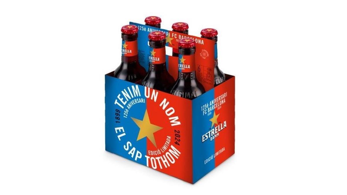 Estrella Damm ha preparado una edición especial de cervezas para participar en el 125º del FC Barcelona, del que es uno de sus espónsors principales. Las botellas conmemorativas, de 33 cl, lucen un etiquetaje especial en el que aparece la estrella dorada con los colores azulgranas rodeada de una de las frases del himno azulgrana: “Tenim un nom, el sap tothom”.