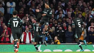 Bukayo Saka reapareció tras dos partidos de ausencia con un gol (m. 10), el 50º que anotaba en la Premier, maravilloso. Recogió un pase largo de Ben White, recortó hacia el interior a Andy Robertson y clavó un zurdazo entre Caoimhín Kelleher y el poste más cercano. Muy medroso en el campo, sin vigor, el Liverpool tuvo la fortuna de reengancharse pronto gracias a un gol nacido en un córner que prolongó Luis Díaz en el primer palo y remachó Virgil Van Dijk en el área de meta. Quince de los últimos 18 goles del capitán del Liverpool llegaron por la vía aérea.