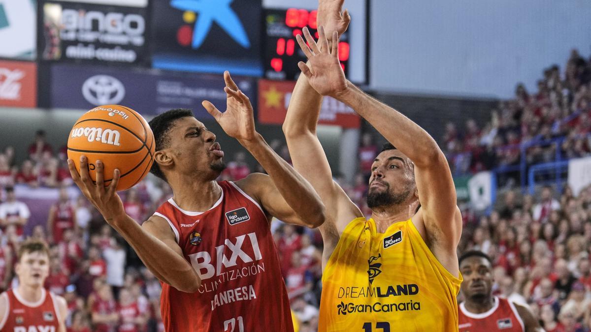 Tras un primer cuarto de poca anotación en ambos lados, y pese a que el Dreamland Gran Canaria empezó con un parcial de 0-4, el Baxi Manresa puso la sexta marcha en el acelerador de la mano de Retin Obasohan y disparó a los catalanes en el luminoso (29-23, min. 15).