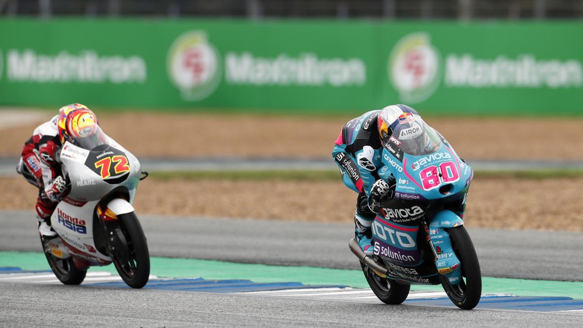 Tras ellos iban el japonés Taiyo Furusato (Honda), con unos metros de ventaja sobre el grupo en el que marchaba el líder del mundial, David Alonso (CFMoto), además del neerlandés Collin Veijer (Husqvarna), entre otros.