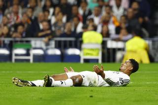 Jude Bellingham se lamenta durante el Real Madrid-Milan. / Reuters