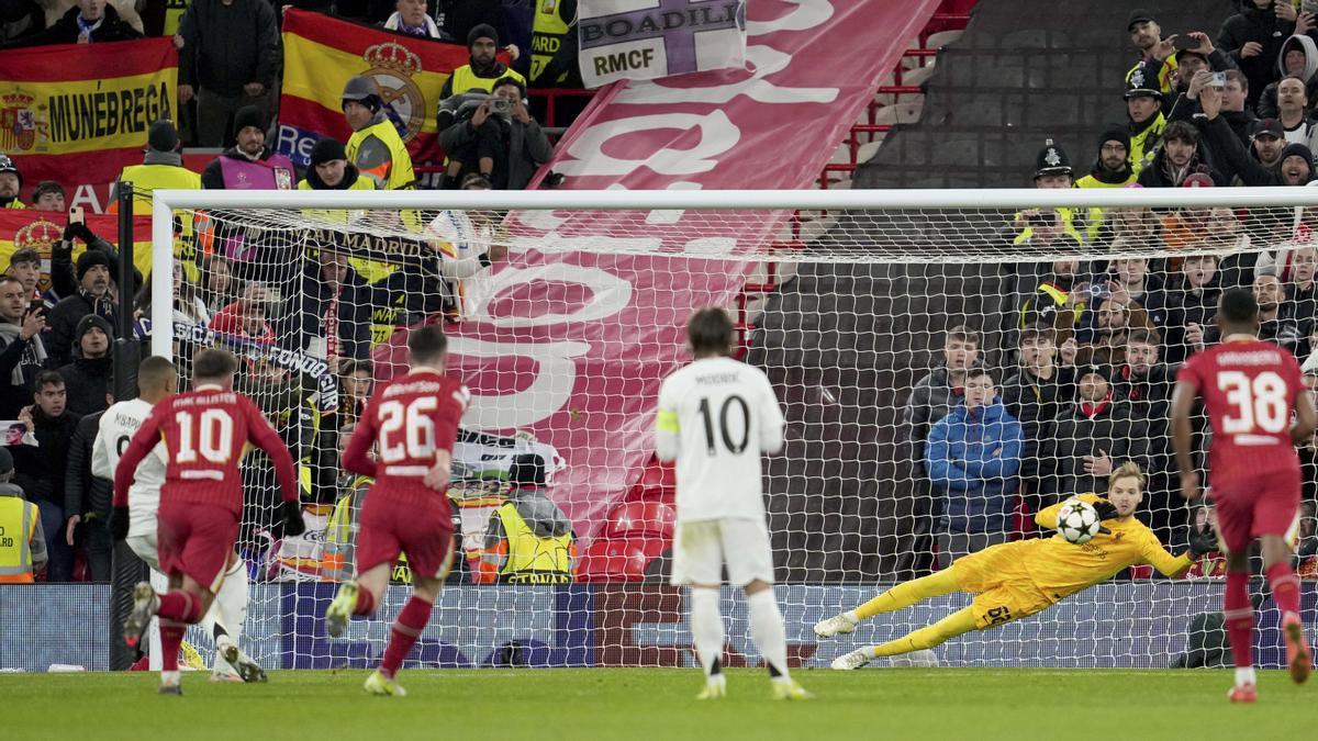 El 22 de febrero de 2023 Anfield despidió aplaudiendo de pie al Real Madrid después de que los de Ancelotti golearan por (2-5) al Liverpool con una exhibición de Vinicius, Bellingham, Modric y compañía. Veinte meses después los blancos regresaban al coliseo inglés diezmados por las bajas de Vinicius y Rodrygo arriba y con una defensa parcheada con Valverde en el lateral y el ‘becario’ Asencio pasando su examen más exigente. Carletto apostó por un once de seda con jugadores de buen pie para domesticar al vertiginoso Liverpool de Slot.