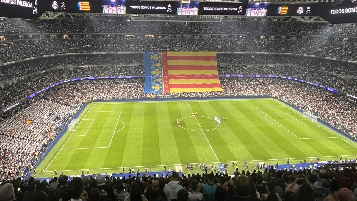Además, en lugar del tifo en apoyo a su equipo que suele preparar la grada de animación blanca antes de los partidos de Champions se desplegó una pancarta de «Valencia somos todos» y se coreó la consigna «Valencia siempre presente». Todo esto acompañado de una enorme bandera de la Comunidad Valenciana en Preferencia del Santiago Bernabéu. La ‘terreta’, donde se han suspendido todos los eventos deportivos, como desearon muchos jugadores, valencianos o no.