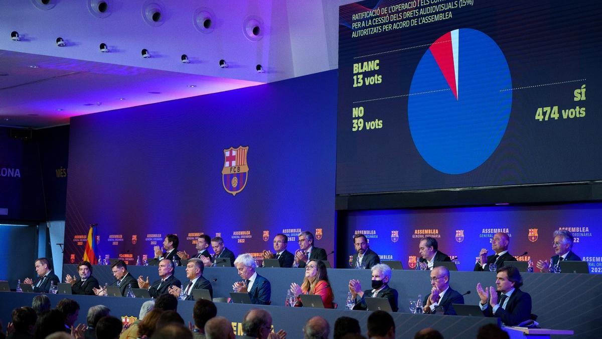 Auditori 1899 del Camp Nou. 21 de octubre de 2023. Llevamos 2 horas 4 minutos y 10 segundos de asamblea de socios-compromisarios (telemática, claro) del FC Barcelona. En el centro de la mesa presidencial, Joan Laporta. A su izquierda, Josep Cubells, el secretario que considera que los directivos deberían «cobrar, porque el Barça requiere mucha dedicación». A la derecha del presidente, cómo no, su fiel escudero Rafa Yuste y, pegadito a Yuste, Eduard Romeu, vicepresidente económico.