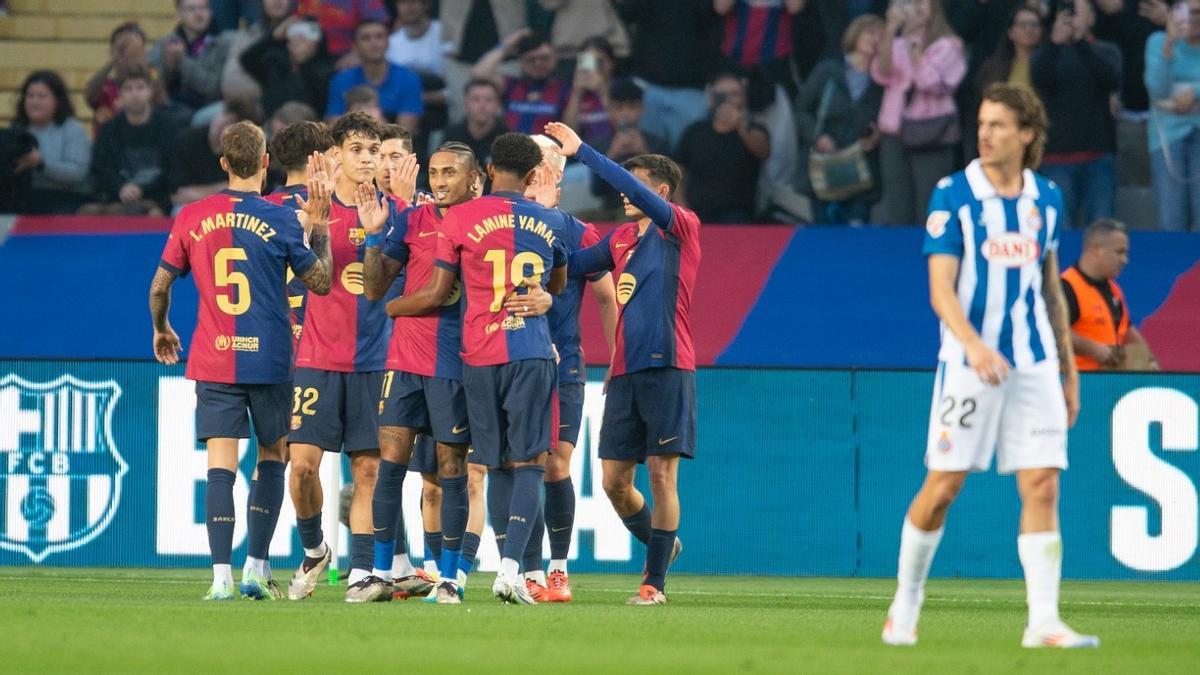 El Barça ha ampliado la semana grande. No terminó con la goleada del clásico, sino que añadió otro recital en el derbi. Ya es quincena maravillosa. O mes mayúsculo si se fija el comienzo del estado de gracia azulgrana al día siguiente de encajar su primera y última derrota liguera en Pamplona. Si el Madrid no pudo contener el chorro de energía que desparramó el once azulgrana en el Bernabéu, menos iba a hacerlo el Espanyol, uno segundo, el otro decimoséptimo.