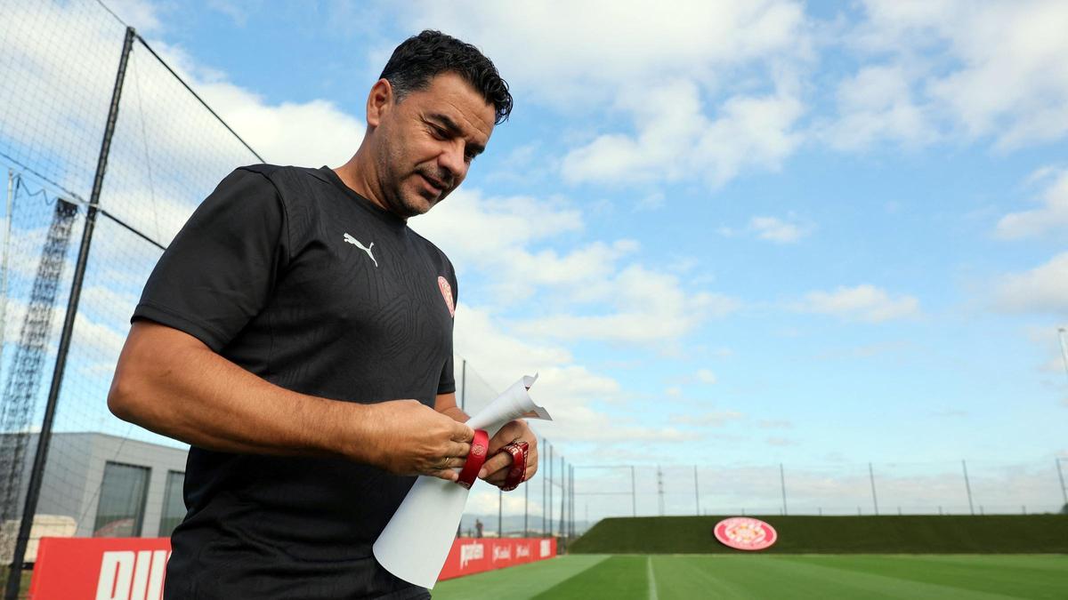 Míchel, en el entrenamiento del Girona previo al duelo europeo contra el Slovan de Bratislava. / Efe / David Borrat