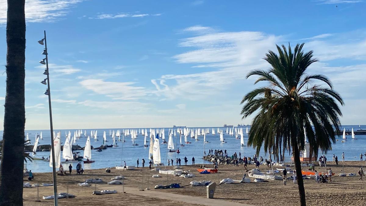«En la vela ligera no hay otra clase en el mundo que pueda reunir a tanta gente», afirma el presidente de la Unió de Federacions Esportives de Catalunya (UFEC), Gerard Esteva, en la regata que ha concentrado este sábado 350 patines a vela en la playa del Somorrostro de Barcelona.