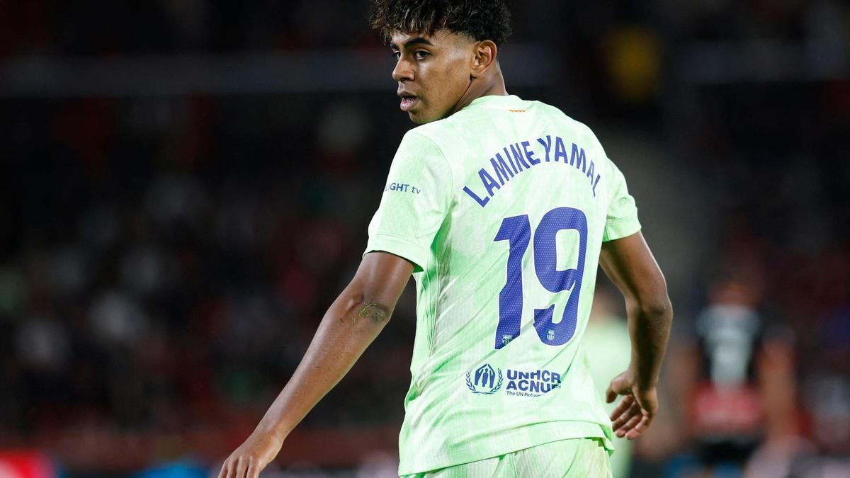 Lamine Yamal, durante el último triunfo del Barça en Son Moix. / Afp