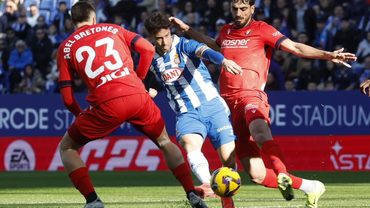 Fue desesperante ver cómo cada uno lo intentaba, con mucho ímpetu pero pocos recursos. Se fueron intercambiando golpes, pero tanto los errores individuales como la falta de eficiencia en la circulación de balón impidieron que ni Espanyol ni Osasuna se impusiera. El balón solo circuló, se paseó. Rondaba el minuto 70 de partido y ninguno de los dos equipos había sumado una sola ocasión de gol. Vicente Moreno lanzaba consignas con los brazos en jarras dentro del área técnica. A pocos metros, Manolo González hacía aspavientos a sus futbolistas para que espabilaran. Ambos se desesperaban ante la poca claridad de sus jugadores.